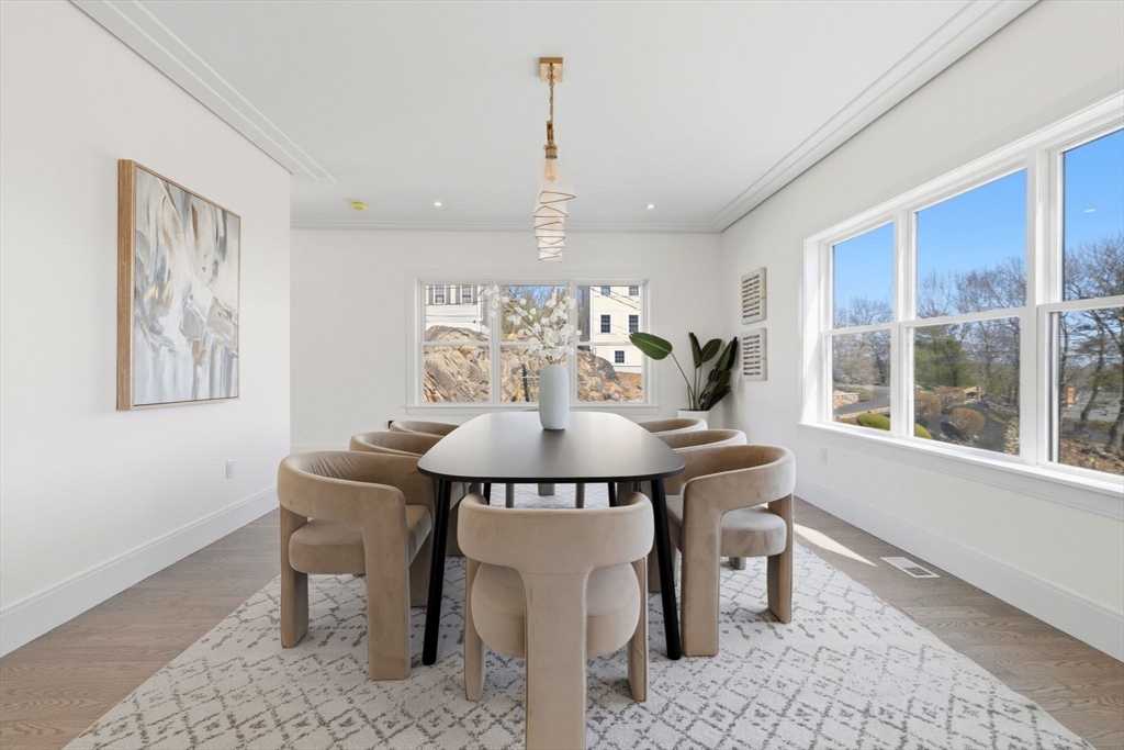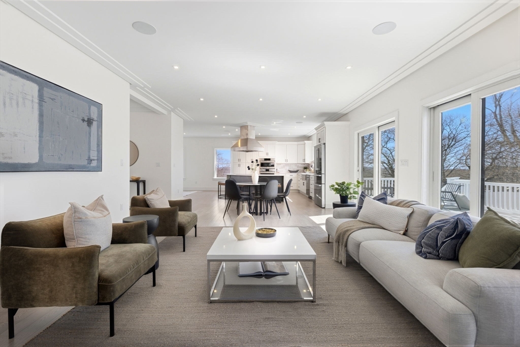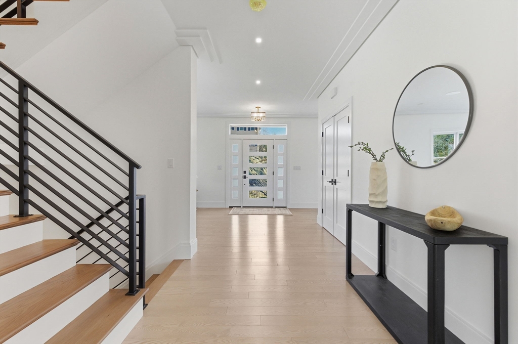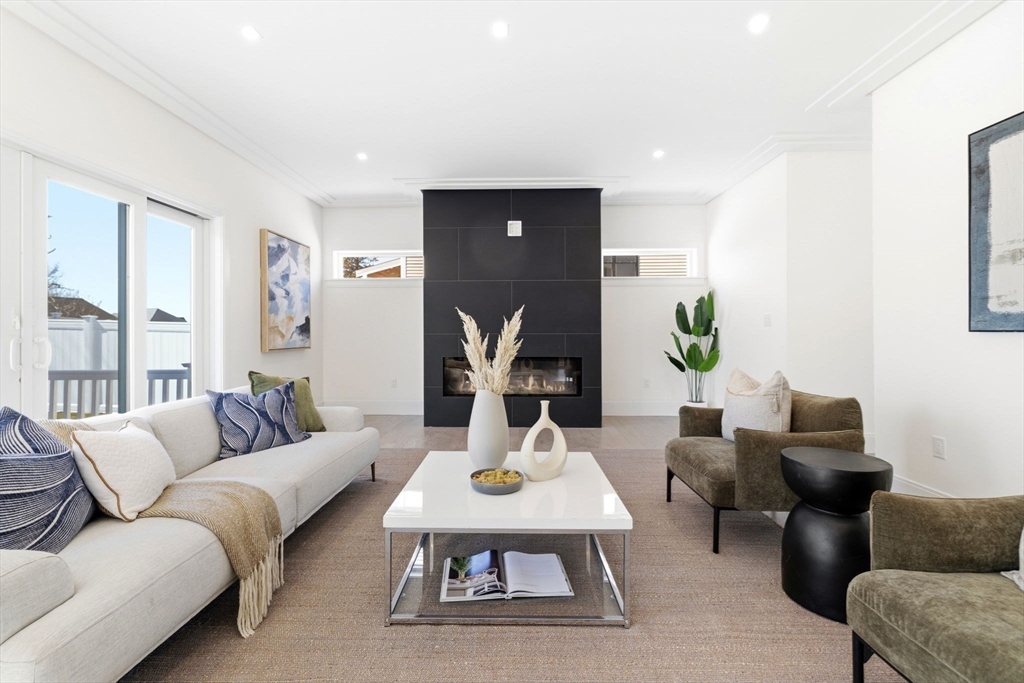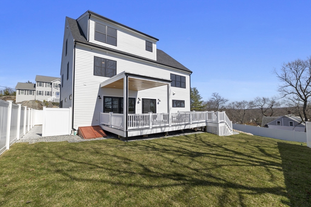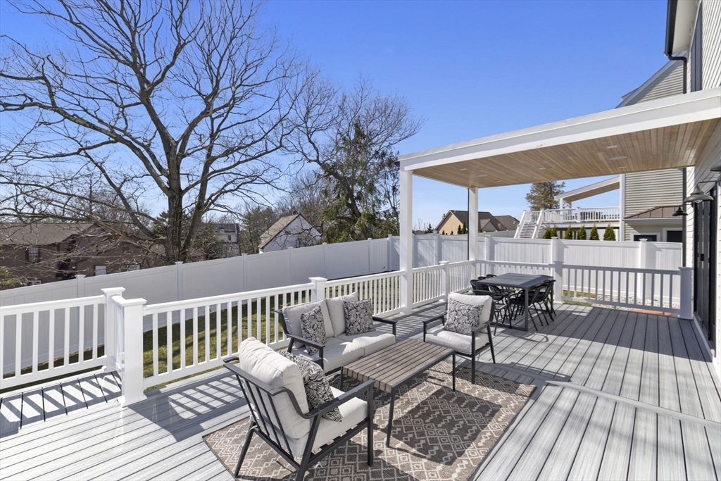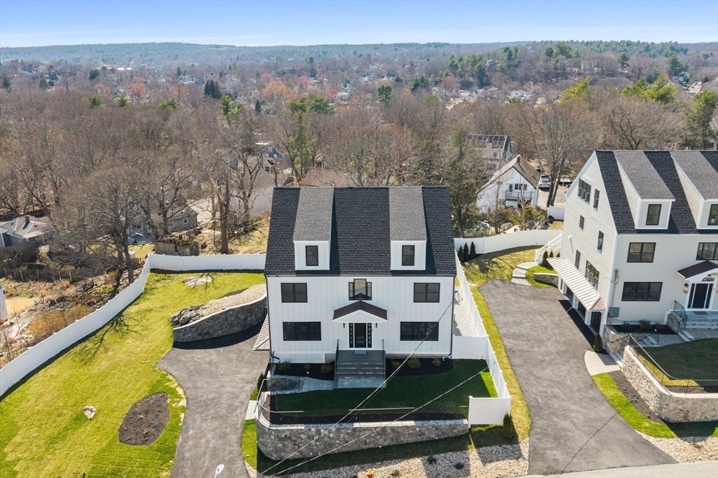 New construction in desirable town of Melrose! This home features 9-ft ceilings & an open floor plan designed for today's buyers. The chef's kitchen offers white cabinetry, quartz countertops, an horseshoe island, stainless steel appliances w/industrial hood, flowing into a bright family room w/grey floor to ceiling ct fireplace access to a covered composite deck--perfect for entertaining w/Boston skyline views. The dining room w/custom moldings & wet bar connects seamlessly to the kitchen, while a first-floor living room is ideal as a playroom or office. Upstairs includes 4 bedrooms, 3Full Baths & Laundry room. Luxurious primary suite w/double quartz vanities, tiled shower, & two walk-in closets. A 5th bedroom, full bath, office, & bonus space on the upper level ideal nanny or guest suite. Lower level features exercise room, mudroom, & 3-car garage. Minutes to downtown Melrose; Starbucks, Whole Foods, Fine Dining, Shopping, Golf, Public Transportation the Commuter Rail & All Major Rtes