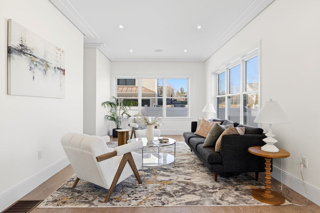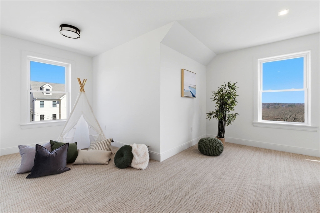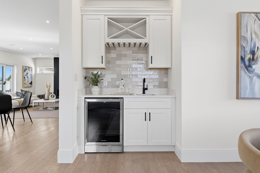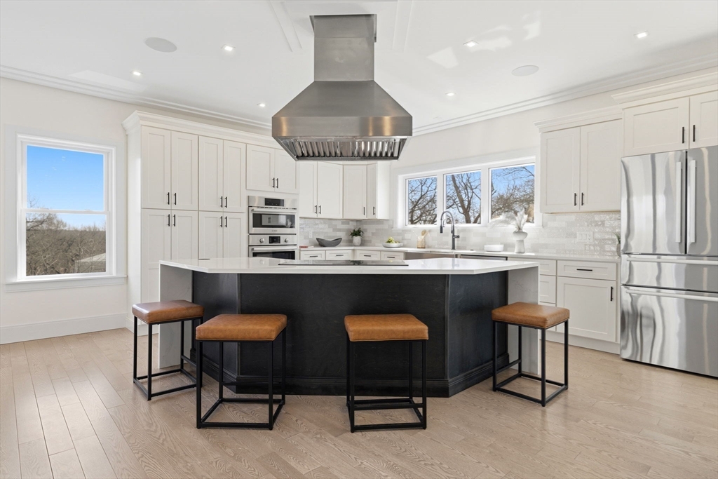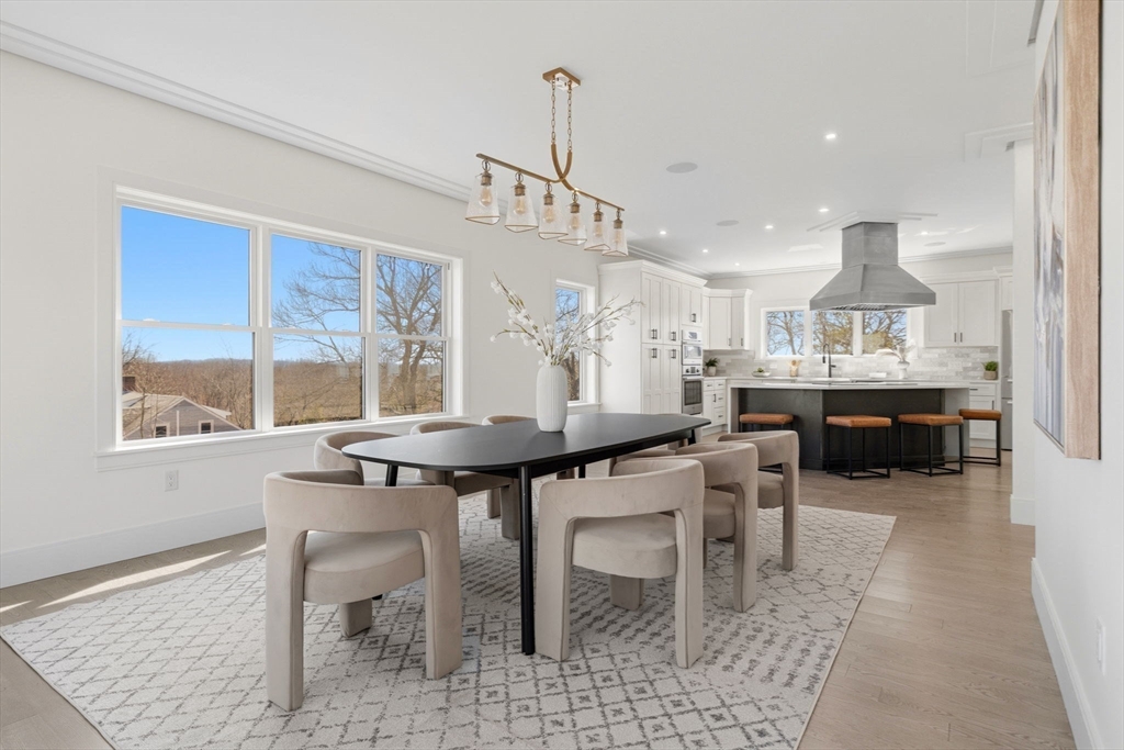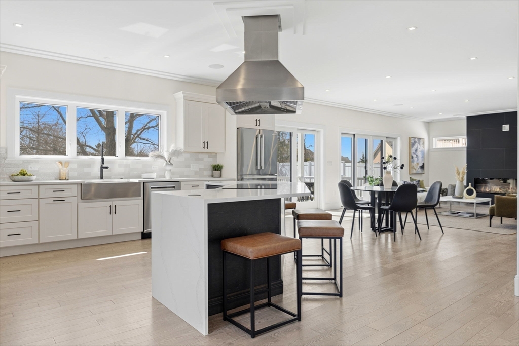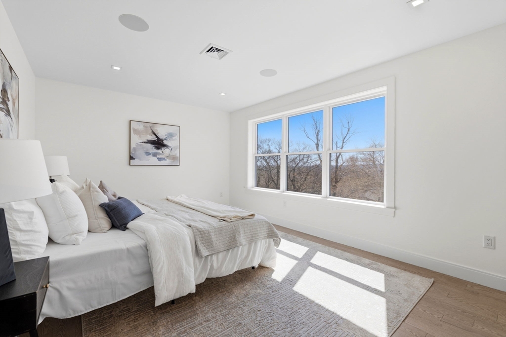 New construction in desirable town of Melrose! This home features 9-ft ceilings & an open floor plan designed for today's buyers. The chef's kitchen offers white cabinetry, quartz countertops, an horseshoe island, stainless steel appliances w/industrial hood, flowing into a bright family room w/grey floor to ceiling ct fireplace access to a covered composite deck--perfect for entertaining w/Boston skyline views. The dining room w/custom moldings & wet bar connects seamlessly to the kitchen, while a first-floor living room is ideal as a playroom or office. Upstairs includes 4 bedrooms, 3Full Baths & Laundry room. Luxurious primary suite w/double quartz vanities, tiled shower, & two walk-in closets. A 5th bedroom, full bath, office, & bonus space on the upper level ideal nanny or guest suite. Lower level features exercise room, mudroom, & 3-car garage. Minutes to downtown Melrose; Starbucks, Whole Foods, Fine Dining, Shopping, Golf, Public Transportation the Commuter Rail & All Major Rtes