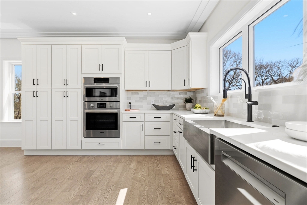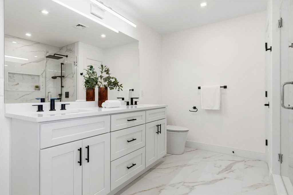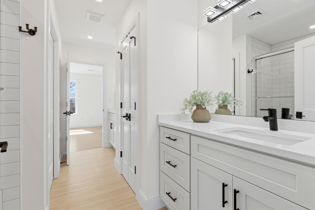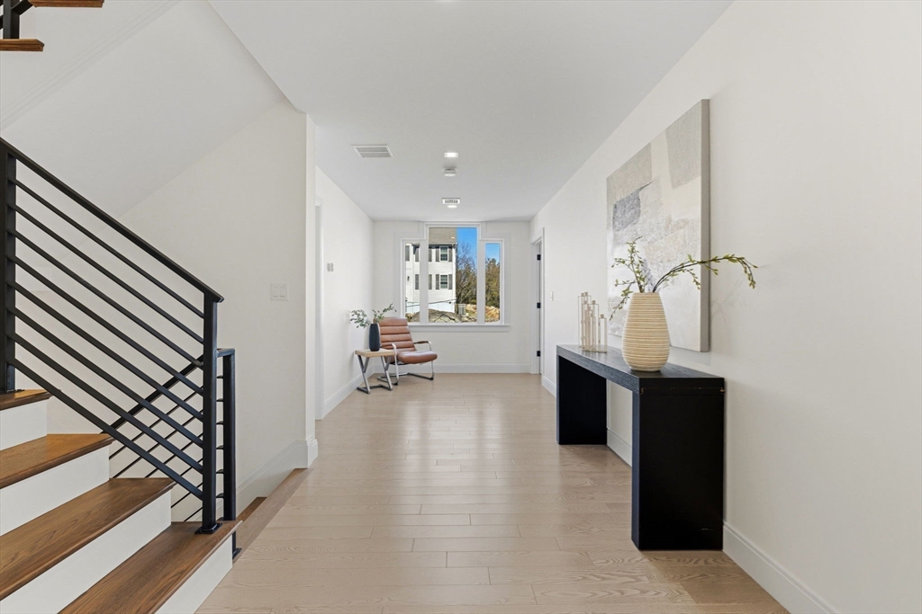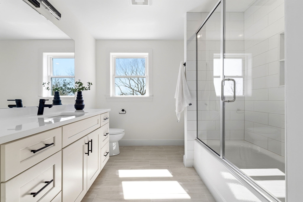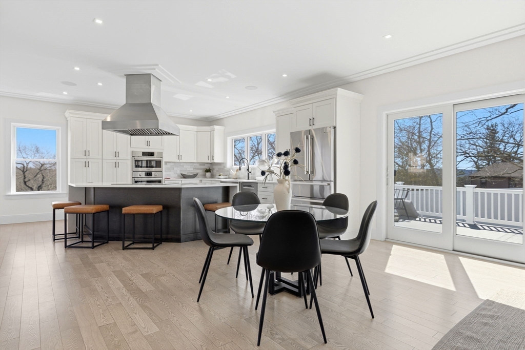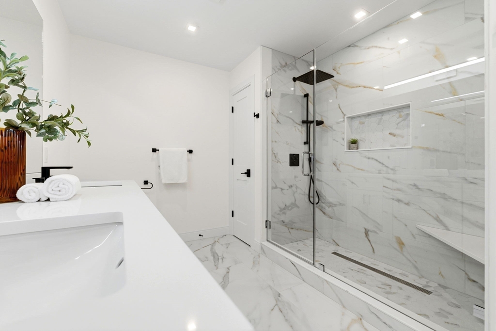 New construction in desirable town of Melrose! This home features 9-ft ceilings & an open floor plan designed for today's buyers. The chef's kitchen offers white cabinetry, quartz countertops, an horseshoe island, stainless steel appliances w/industrial hood, flowing into a bright family room w/grey floor to ceiling ct fireplace access to a covered composite deck--perfect for entertaining w/Boston skyline views. The dining room w/custom moldings & wet bar connects seamlessly to the kitchen, while a first-floor living room is ideal as a playroom or office. Upstairs includes 4 bedrooms, 3Full Baths & Laundry room. Luxurious primary suite w/double quartz vanities, tiled shower, & two walk-in closets. A 5th bedroom, full bath, office, & bonus space on the upper level ideal nanny or guest suite. Lower level features exercise room, mudroom, & 3-car garage. Minutes to downtown Melrose; Starbucks, Whole Foods, Fine Dining, Shopping, Golf, Public Transportation the Commuter Rail & All Major Rtes
