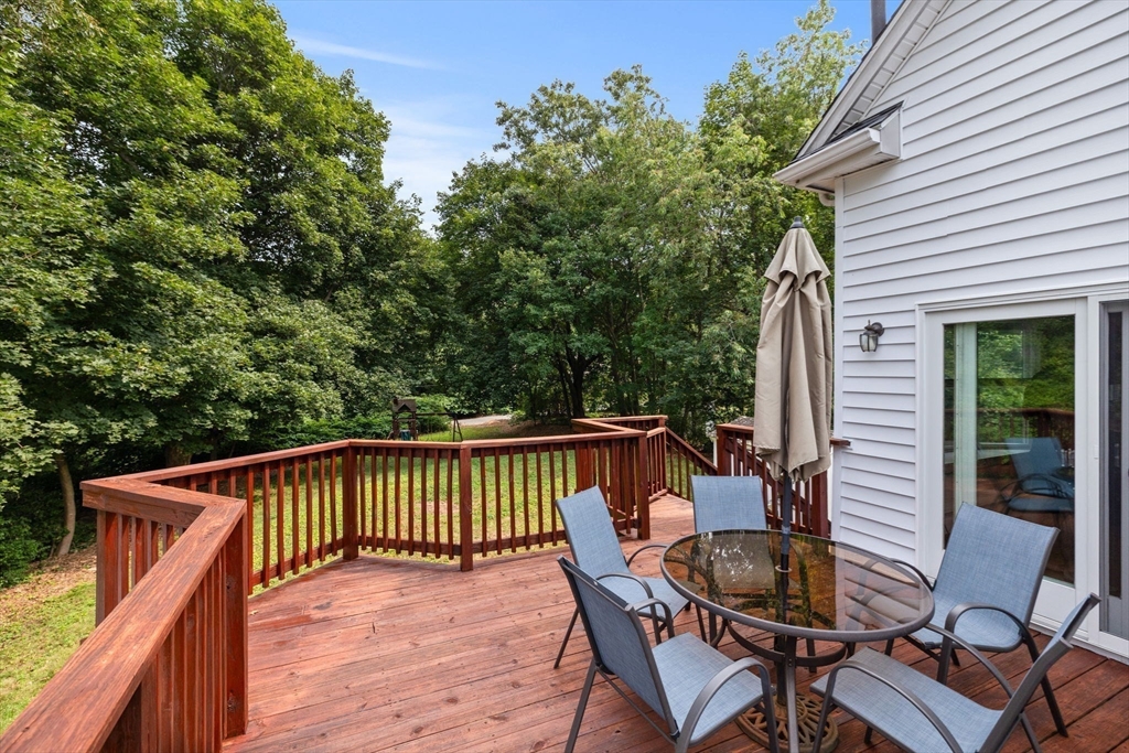 This Classic Charming Center entrance Cape on a dead-end street sits on an oversized 13,000+ sq ft lot--truly one of a kind. The Open floor plan connects a spacious Kitchen w/recess Lighting, Natural Gas Cooking, Cherry Cabinets and Corian countertops to the Dining area with sliders to a wraparound deck overlooking the double private lot! A private first-floor office/den is tucked away & private. The sun-filled living room flows seamlessly to the kitchen--perfect for entertaining. Upstairs offers 3 bedrooms & a beautifully renovated tiled full bath w/Tub and shower. The lower level includes a half bath w/a room waiting to be finished that walks out with sliders to the yard w/sprinklers in the front yard. Updates include a 3-bedroom septic system (2014), roof (approx. 5 years), natural gas heating system (2019)Hot Water Tank(2022). A rare opportunity w/great bones & space to grow! Just minutes to Huckleberry Hill School, all Major Routes, Whole Foods, Starbucks, Fine Dining, and more!