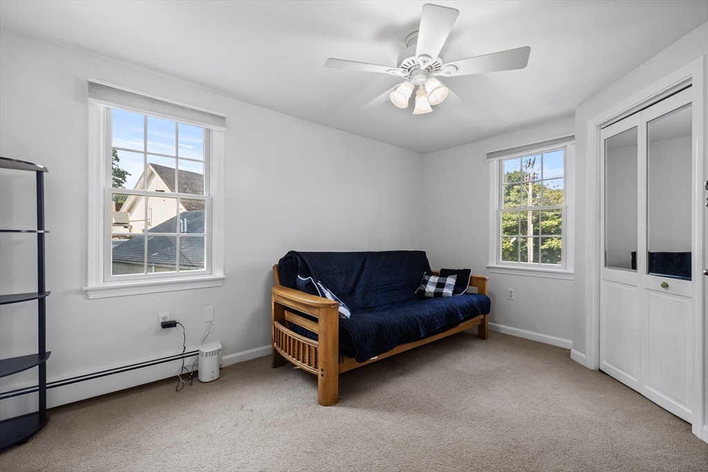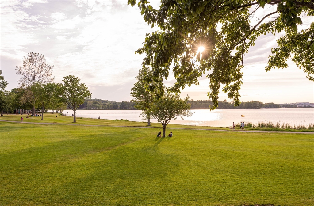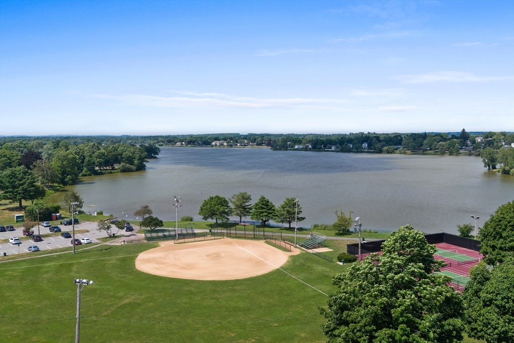 Location, Location, Location! This rare 2-bedroom, 1.5-bath townhome is perfectly situated across from beautiful Lake Quannapowitt in the heart of downtown Wakefield--just steps to shops, restaurants, and the Wakefield Commuter Rail. Only 15 miles to Boston, with easy access to major highways and just 1/4 mile to the commuter rail (5 miles to the Orange Line), this home offers unbeatable convenience. The white eat-in kitchen with stainless steel appliances opens to a spacious living/family room, ideal for relaxing or entertaining. The first floor features hardwood floors, in-unit laundry, and a half bath for guests. Upstairs, enjoy scenic lake views from the master bedroom, plus a second bedroom--both with access to a full bath. There's ample storage in the third-floor attic and shared basement, as well as two deeded parking spaces and additional off-street parking. Enjoy the outdoors with walking and bike trails around the lake and a seasonal farmers market right across the street.