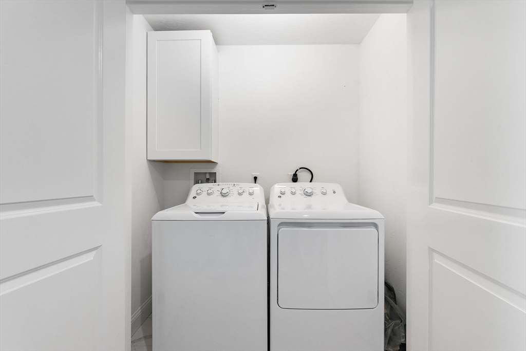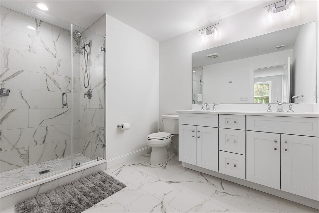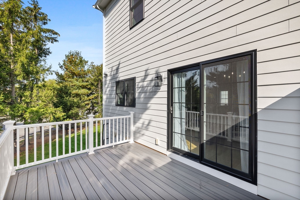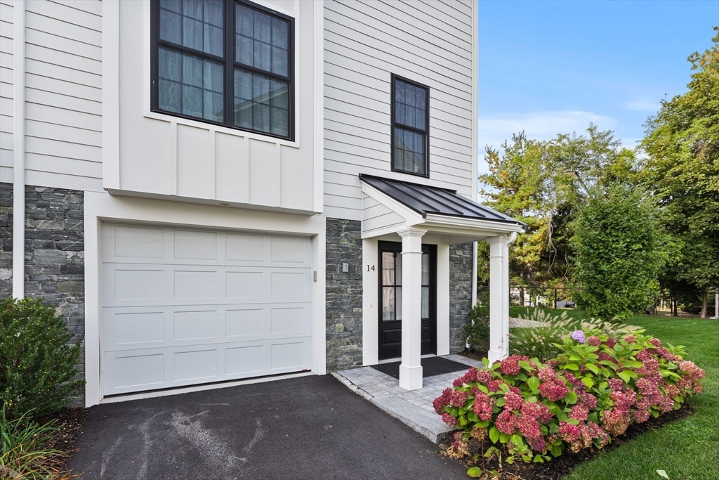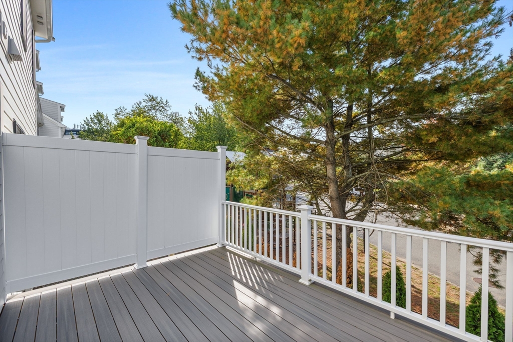 OPEN HOUSE Sat & Sun 11:30-1:00, End Unit, built in 2023 with today's modern style-open floor Plan. White exterior, black accents, and extra windows that fill the home with light. The first floor offers a private office, while the open main level features 9+ ft ceilings, gleaming oak hardwoods, and a chef's kitchen w/upgraded white cabinetry, Quartz island & countertops, basket-weave backsplash, stainless steel appliances, and gas cooking with grill. The kitchen flows to a dining room with sliders to a composite deck, perfect for barbecues, and a family room with quartz fireplace--an ideal entertaining space. Upstairs, laundry area, two bedrooms, & two full baths, including a primary suite with walk-in closet and spa-like bath with double quartz sinks and oversized tiled shower. Top floor offers a cathedral-ceiling flex/bedroom. One-car attached garage extra common parking, and a prime location near public transportation, shopping, dining, trails,& major rtes complete this pristine home