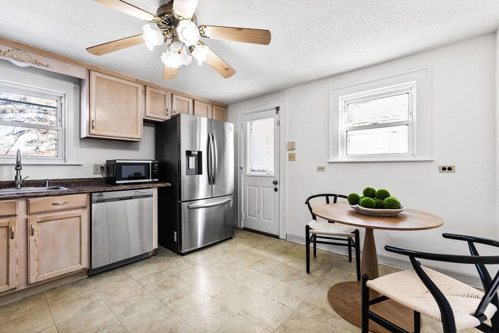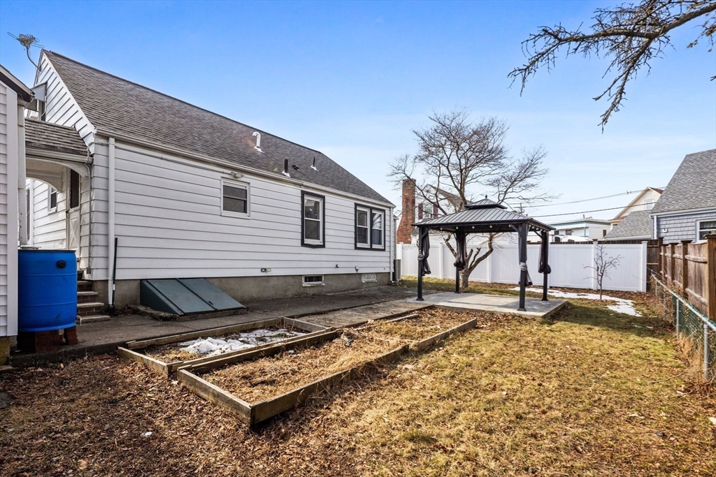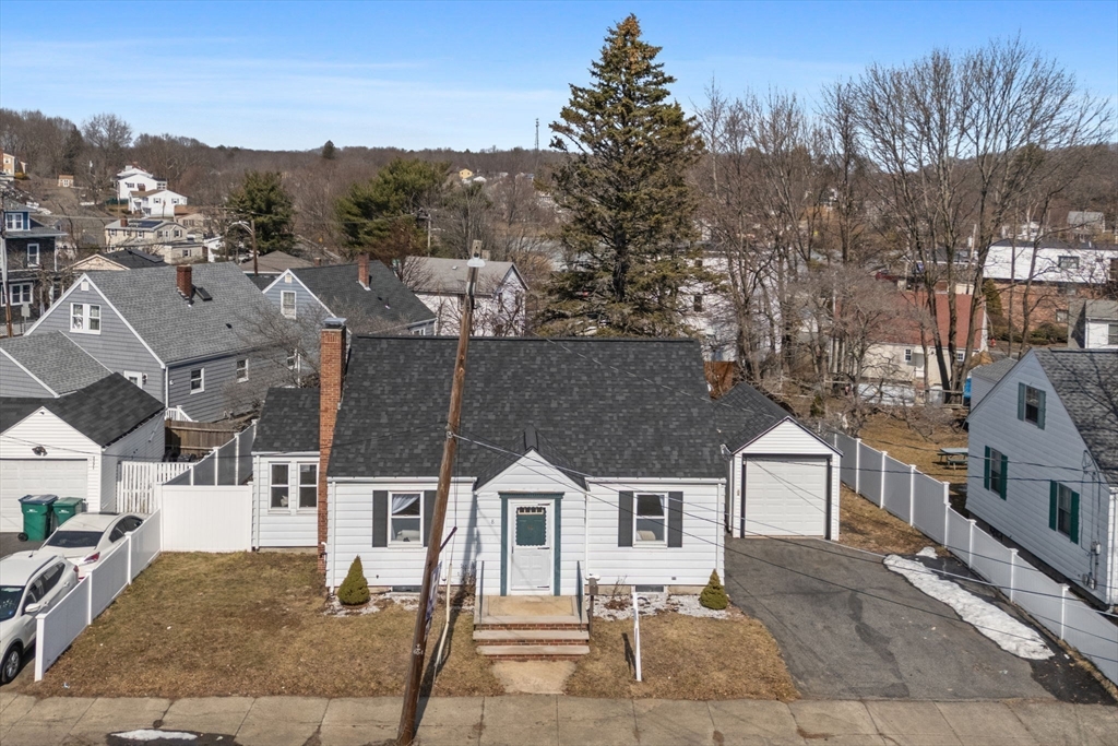 A welcoming Cape with a brand-new roof and sun-filled spaces! Enjoy a private fenced in yard this season with a patio and gazebo setting the stage for spring and summer barbecues, gardening, and relaxing evening under the stars. The bright, window-lined sunroom off the living area is the perfect bonus space for a home office or your favorite sunny retreat. Nestled in a vibrant neighborhood with proximity to Flax pond, local shops, dining, parks, and schools and an easy commute! Inside you'll find hardwood floors, a cozy fireplace, gas cooking and ductless cooling for year-round comfort. A private upper level with a bonus room, additional bath and walk in closet. Ample storage in the basement and detached garage ensures plenty of room for all your needs! Don't miss out! Showings begin at first open house on Friday. Offers due Monday 3/16 12pm