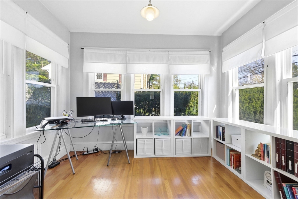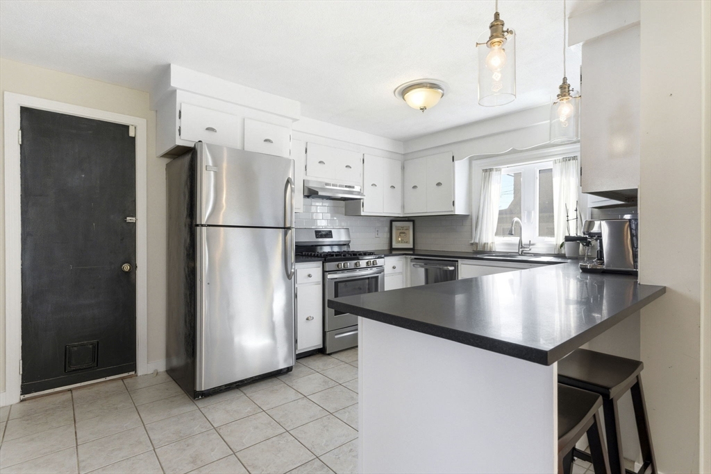 Charming Dutch Colonial w/Hardwood Floors throughout. The Living Room opens to the the Nice size Dining Room for entertaining for the holidays. The First Floor Office located off the living Room is surrounded w/windows very bright & inviting overlooking the private lot. The Updated kitchen w/Gas Cooking white Cabinetry & Subway tile backsplash & Honed Black Granite is all open to First Floor Family Room with a wood stove has access out to the private yard with a patio ideal for barbecuing. Half bathroom is conveniently located on the first level. Upstairs has a lovely landing area ideal sitting area w/three good size bedrooms w/closets. The full bathroom w/tub & shower unit, wainscoting & linen closet is spacious and bright. Low Maintenance w/Newly installed vinyl siding about two years of age. Easy access to all major highways, ten minutes to Market Street, Whole Foods, Fine Dining, Starbucks, Exercise & all Major Rtes. Great price point to get into town for Top Schools of Lynnfield.
